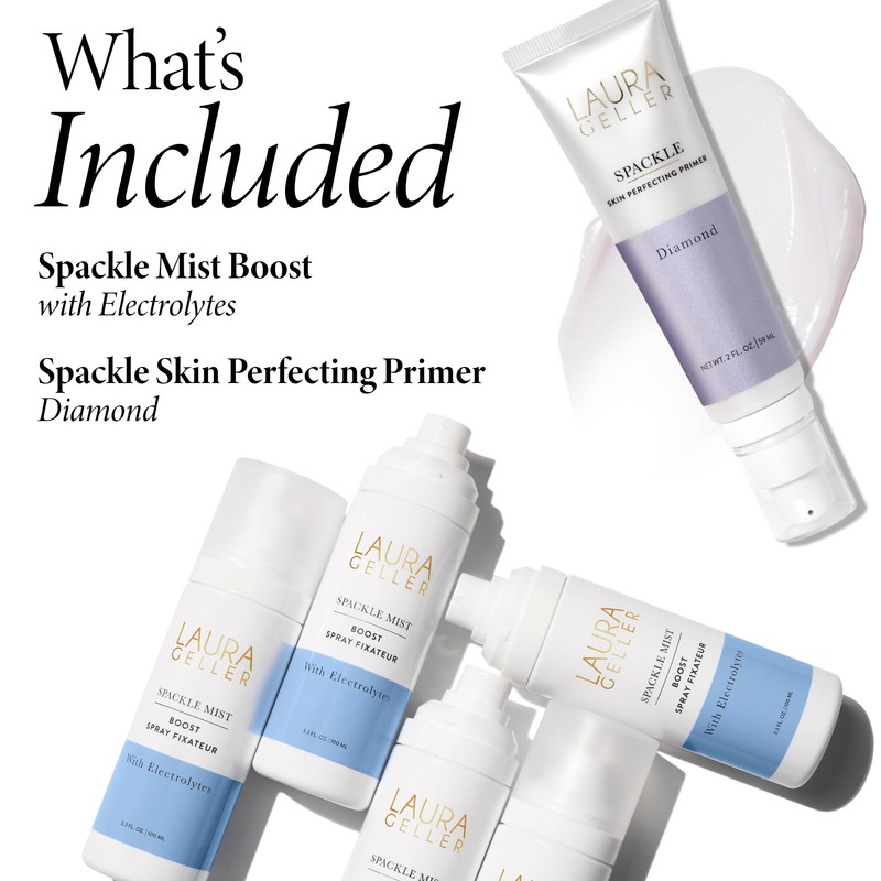 LAURA GELLER NEW YORK Prime-n-Set Duo: Spackle Primer + Spackle Mist Boost Setting Spray with Electrolytes (03 Diamond Glow + Electrolytes, 5.0 Fl Oz)
