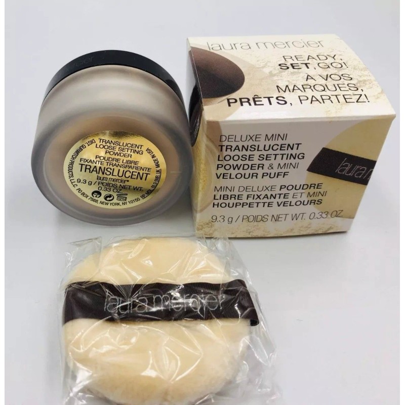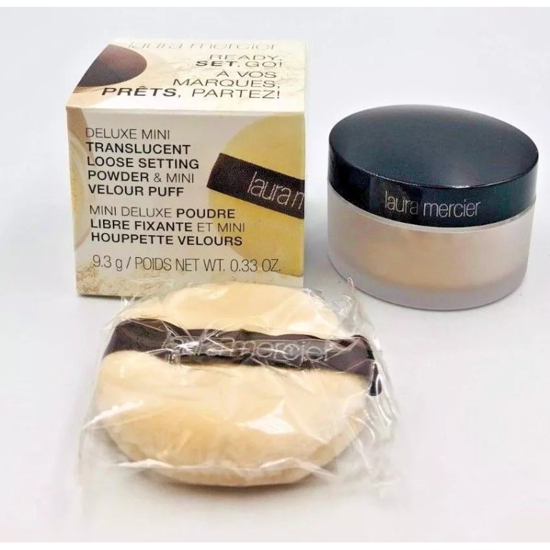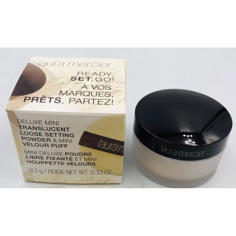 Laura Mercier Deluxe Mini Translucent Loose Setting Powder (0.33oz) and Velour Puff. This cult-favorite powder provides a smooth, shine-free finish for long-lasting wear. Perfect for on-the-go touch-ups.