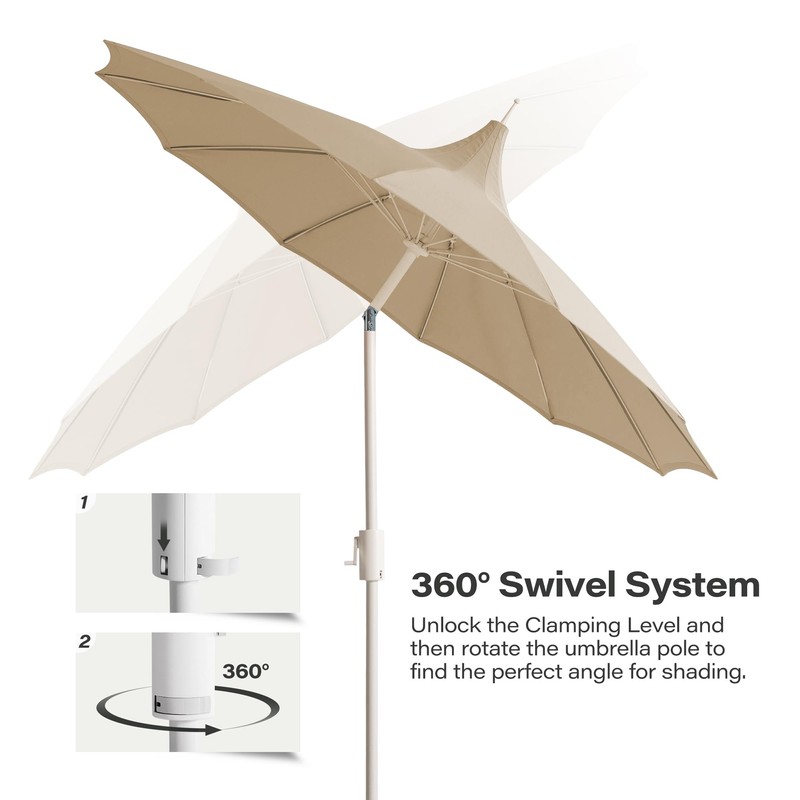 - ROTATABLE OUTDOOR PATIO UMBRELLA - The LAUSAINT HOME patio umbrella incorporates a unique device design that enables 360°horizontal rotation when twisting the pole, allowing you to effortlessly find the perfect position throughout the day.
