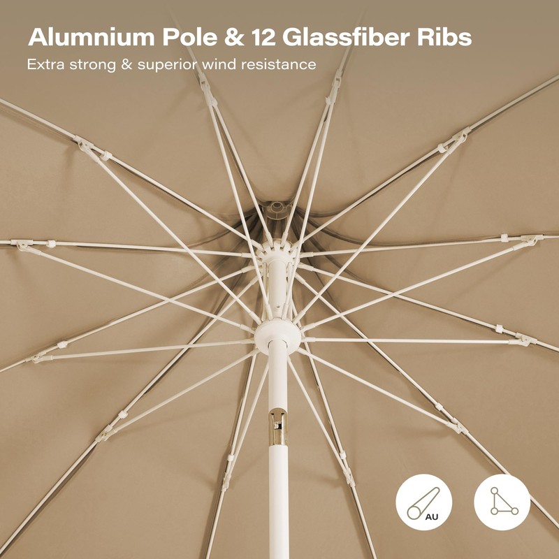 - STURDY & DURABLE - To minimize swaying and enhance the overall strength of our umbrella, the pole is crafted from aluminum with a power-coated finish, and the ribs are made of fiberglass, ensuring optimal stability and durability.