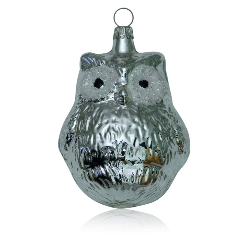 Lauschaer Glas Christbaumschmuck große Eule Silber Christbaumschmuck Weihnachtsschmuck mundgeblasen,handdekoriert