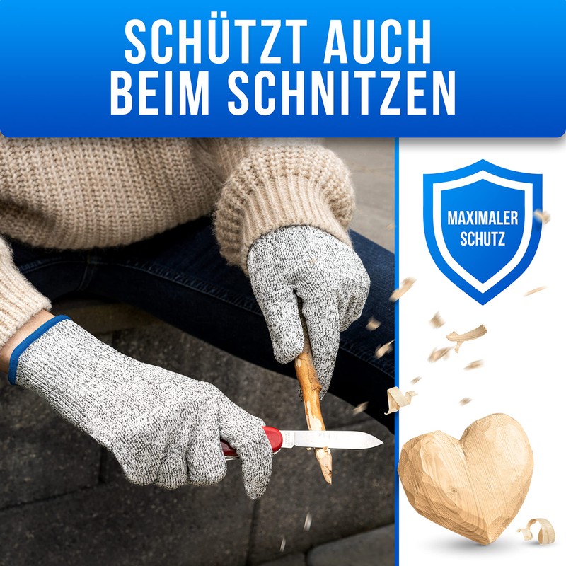 - ?? NEUES PRFVERFAHREN: Die Handschuhe bieten dank ultrahochmolekularem PE, Glasfaser und Spandex Stoffgemisch extremen Schutz vor Schnitten. Sie haben nach der neuen CE-Konformit?tsbewertung Schnnittschutz Klasse C erreicht. Damit bieten sie die Schnittsicherheit, die man beim Arbeiten mit scharfen Messern braucht.