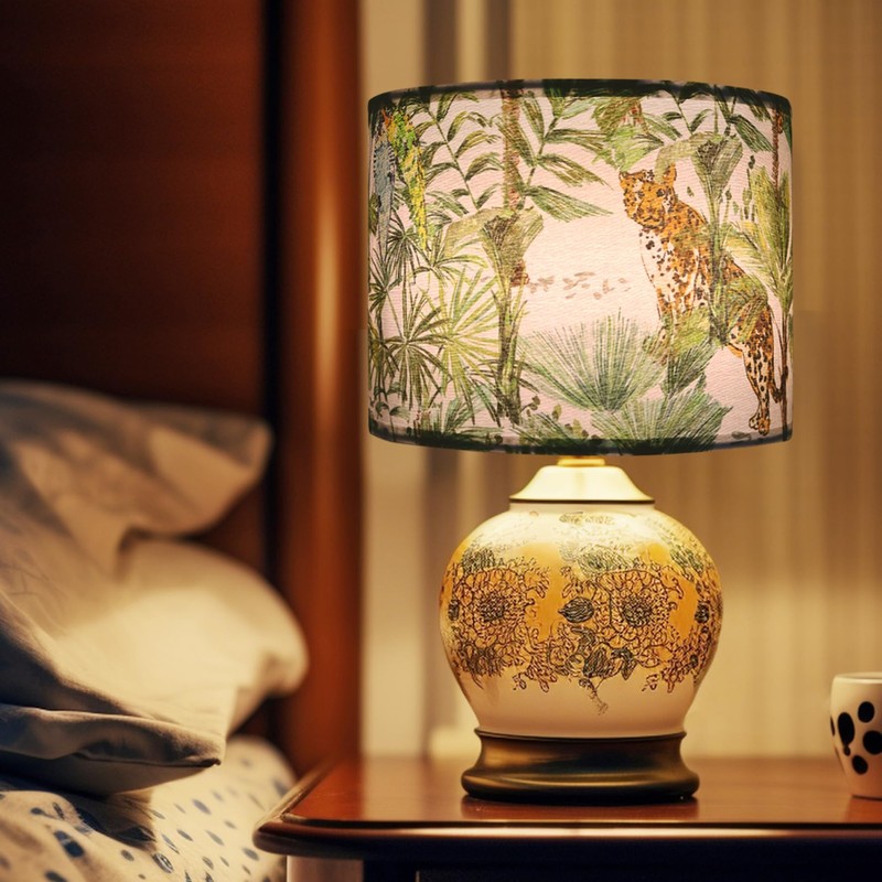 - 【Tropical Oasis Aesthetic】Jungle prints with leopards & parrots, casting vibrant dappled light – ideal for Bohemian, Safari, Adventure, Biophilic or Global Decor themes on floor/desk lamps to energize your bedroom/reading nook.