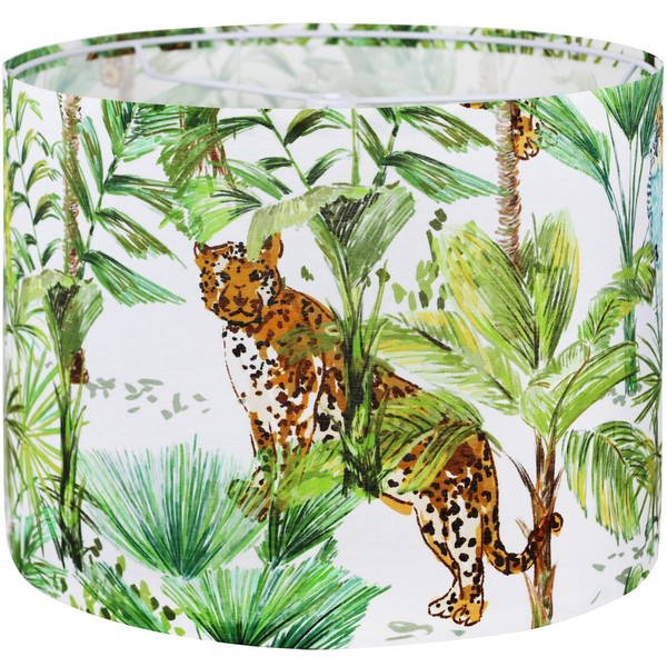 - 【13" Standard Medium Size】Palm Tropical Plants Cheetah printed lampshade (13" top/bottom diameter, 10" height). Fits most table lamps and floor lamps. Verify size compatibility before purchase.