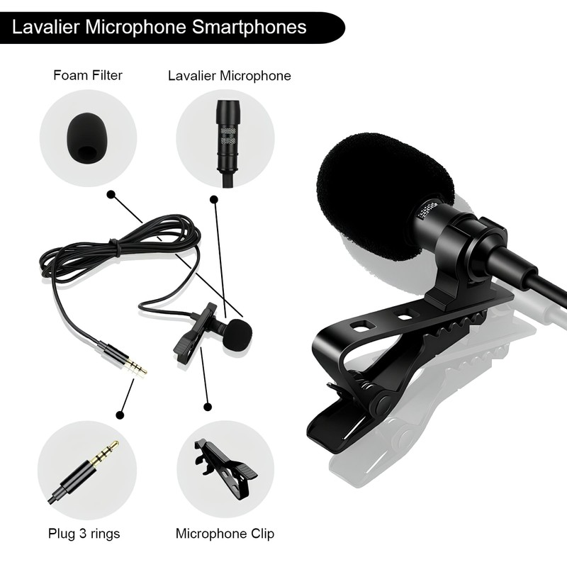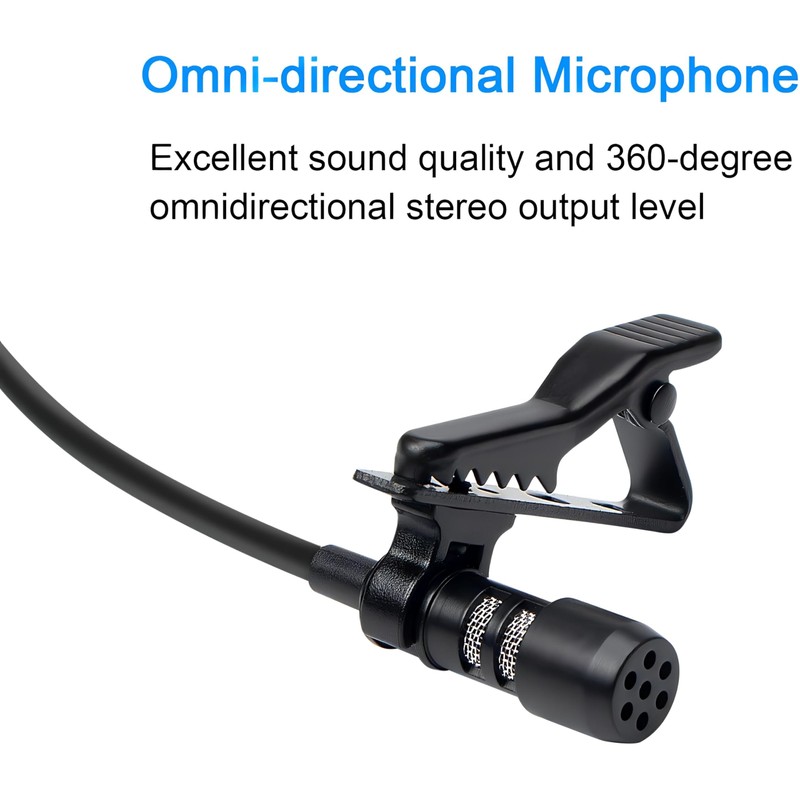 Lavalier Lapel Microphone 3.5mm- Clip-on Lapel Mic -Omnidirectional Mic for R...