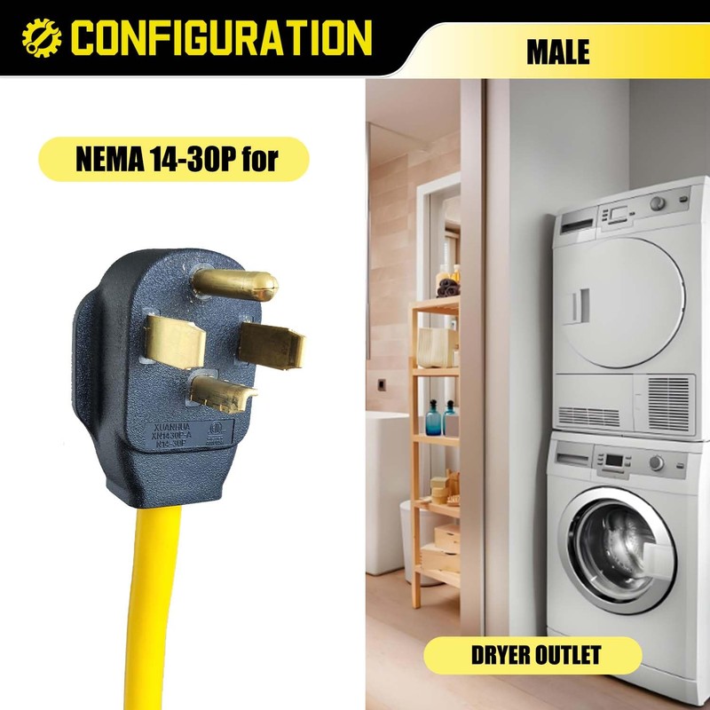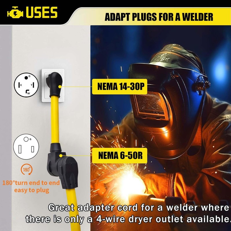 • 【NEMA Configuration】4 Prong dryer 14-30 male plug and 3 prong welding 6-50 female receptacle.