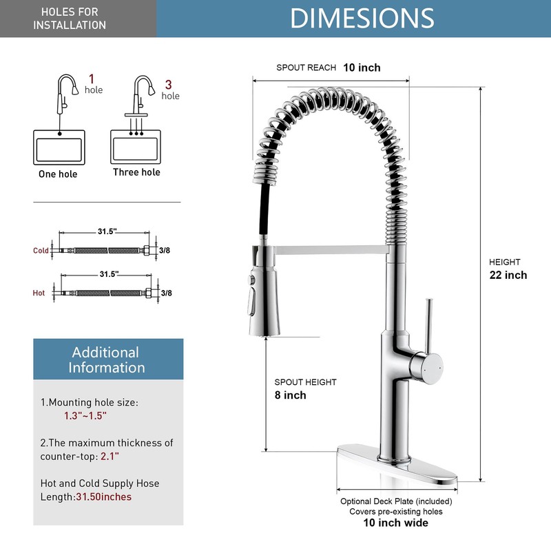 - [Sleek Design and Works Great] high-arc 22inch design and only one design the way the handle works the kitchen faucet meets the common needs of practicality and design aesthetics, making it a faucet that can enhance the overall beauty and practicality of your kitchen