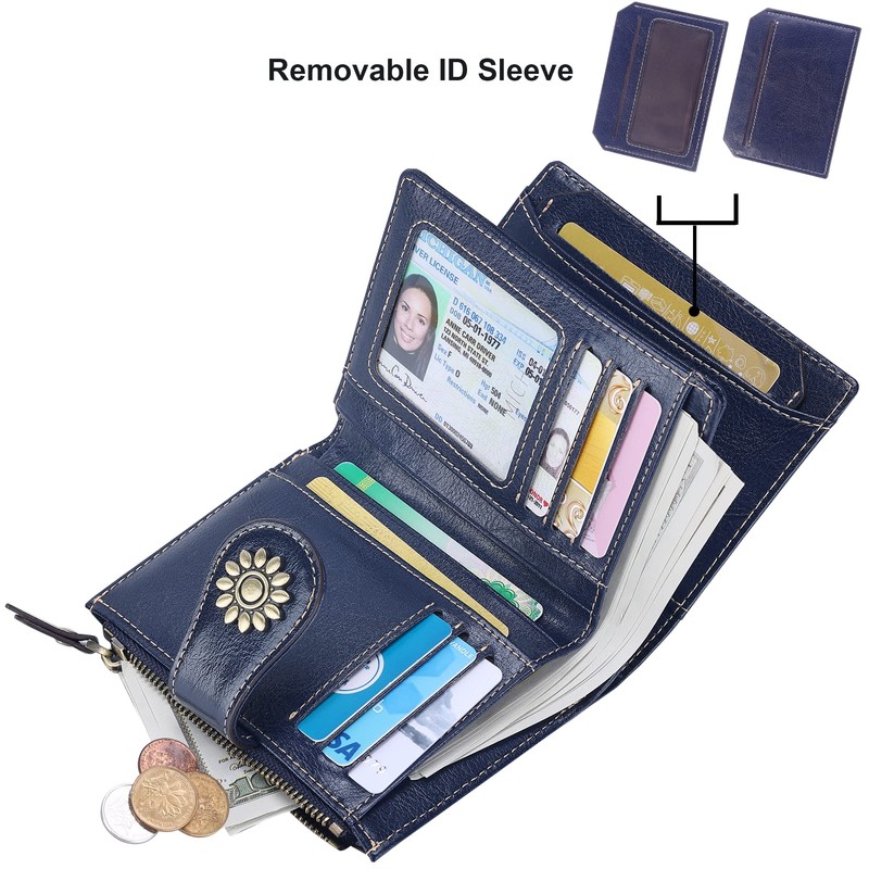 - Diseño funcional: mide 12,5 x 10 x 2,8 cm. Viene con 10 ranuras para tarjetas de crédito y 3 ventanas de identificación, 1 bolsillo con cremallera para monedas, 2 bolsillos de recepción, 1partimento para billetes de longitud completa para poner dinero. La funda extraíble para tarjetas tiene 1 ranura para tarjetas y 1 ventana para identificación. Lo suficientemente espacioso para guardar un montón de tarjetas, cbios y algunas facturas, monedas, manteniéndolas bien organizadas