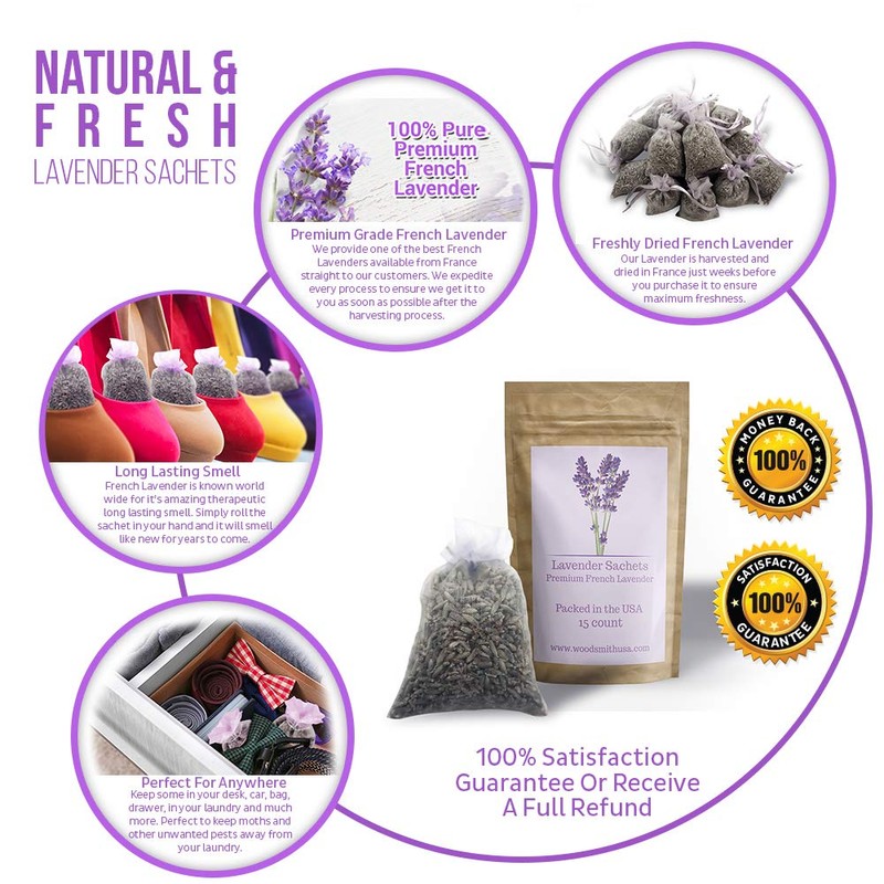 - Our resealable bag ensures that each sachet bag remains fresh. Perfect for drawers, closets, pillows, shoes, car, bathroom, gym equipment and much more.