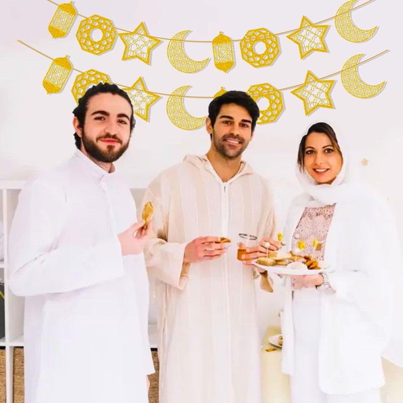 LaVenty Moon Stars Banner Eid Decorations For Home Ramadan For Home Umrah Mubarak Decorations