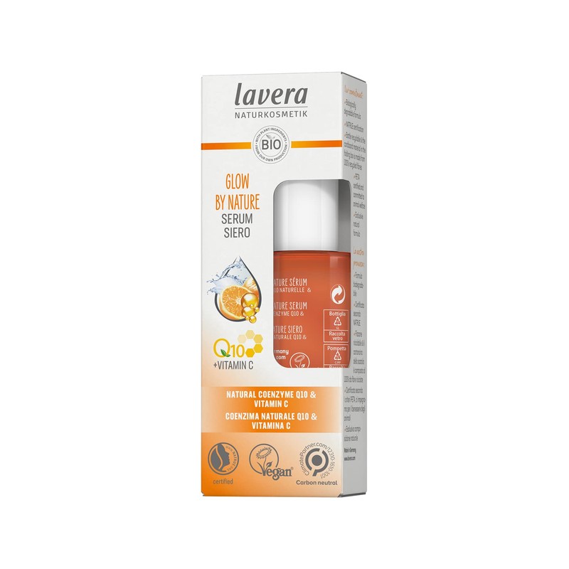 lavera GLOW BY NATURE Serum - Q10 & vitamin C – moisturizing and vitalizing - anti-wrinkle effect - firm skin - natural cosmetics – vegan - organic (1 x 30 ml)