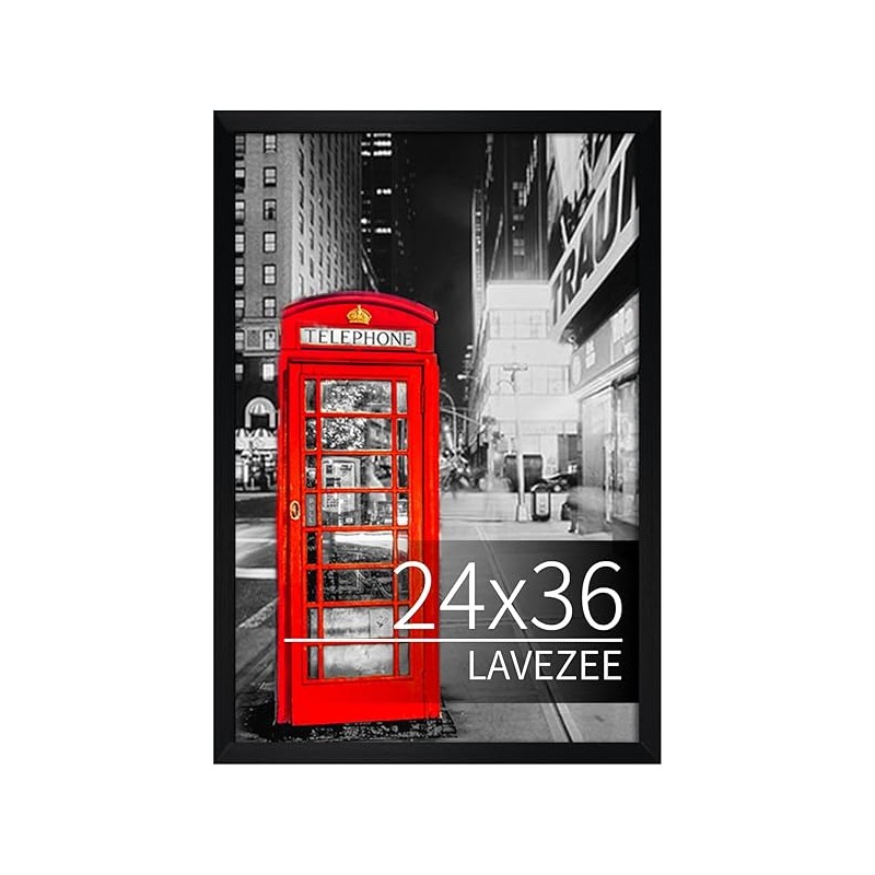 Lavezee 24x36 Poster Frame Black Display 24 x 36 Inch Photo Picture Frame for Wall, Pack of 1