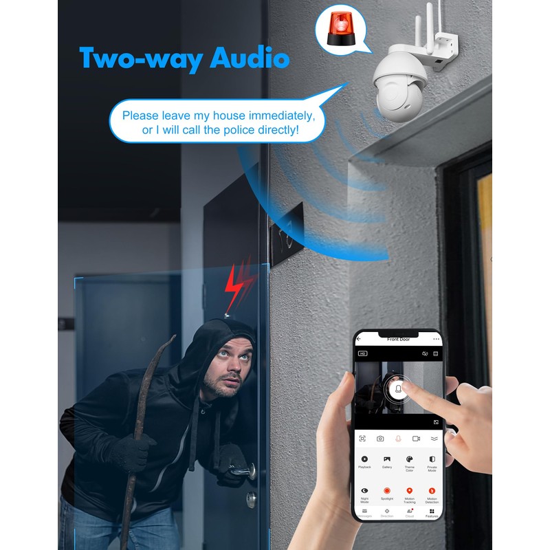 - Two-Way Talk & Alarm Siren: Advanced microphone and speaker for clear two-way communication; set an alarm to deter intruders during sleep with a loud, triggered siren