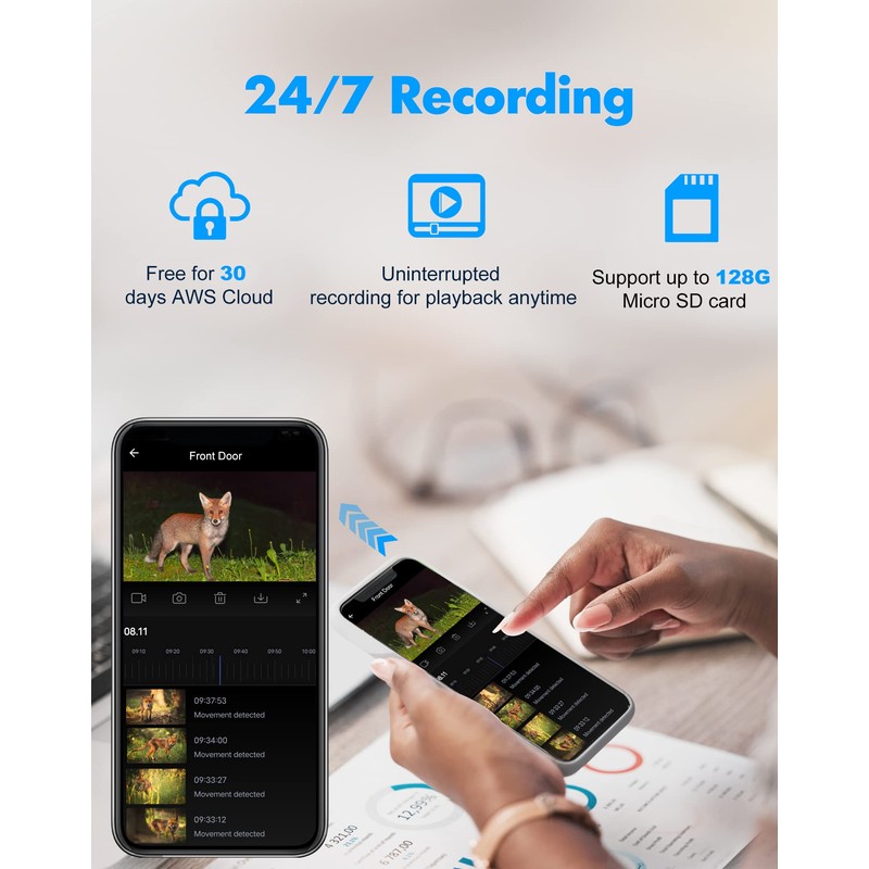 - US Cloud Storage & IP65 Waterproof: Built-in micro SD slot for up to 128GB SD cards; supports secure cloud storage; operates in temperatures from 14 F to 122 F; waterproof and durable against bad weather
