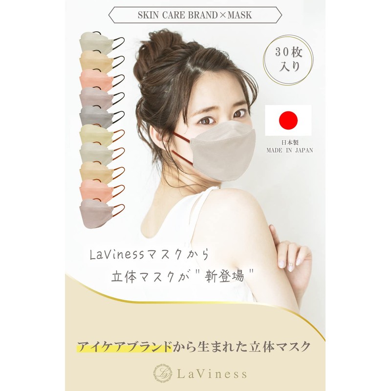 [LaViness] マスク 不織布 立体 立体マスク 日本製 バイカラー 30枚 (オールドレース×ブラック)