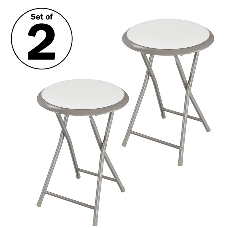 • SET OF 2 – Add extra seating anytime you need it with this 2-piece round stool set. Each white folding stool chair measures just 12.5-inches-wide, ideal for dorm rooms, workspaces, apartments, or as stools for classroom.