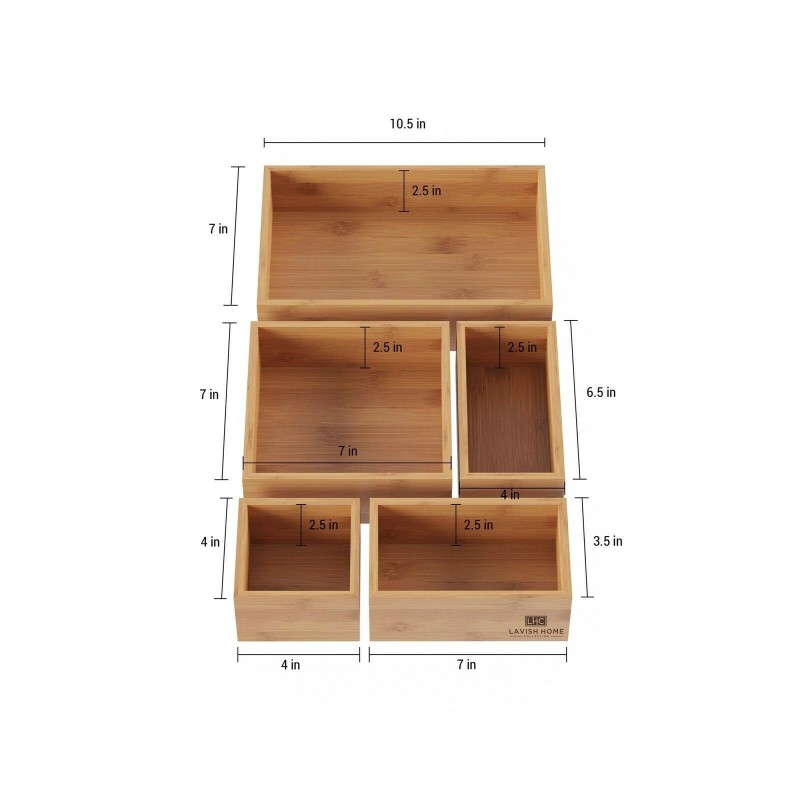 Lavish Home Wooden Bamboo Desk Drawer Organizer Bins 5 Pc Set Table Top Home Office Holders