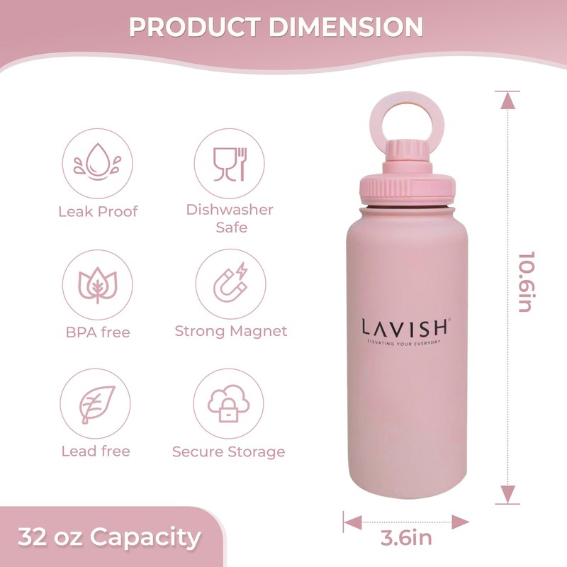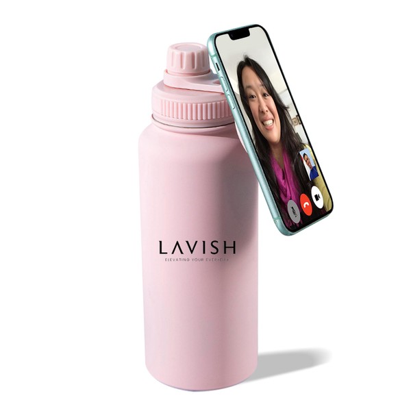 LAVISH Magnetic Bottle | Insulated Water Bottle With Magnetic Phone Holder Compatible with MagSafe | 32oz Stainless Steel, BPA-Free | Tripod Bottle for Selfie Fitness & Crossfit (LIght Pink)