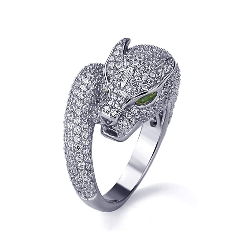 Lavish Sterling Silver Rhodium Plated, Puma Design CZ Pave Setting Right Hand Ring 16mm, 5
