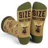 - FUNNY GIFT FOR HUNTERS: Anyone who loves to hunt will get a kick out of these witty hunting socks featuring the message "Size Matters." They’ll love to wear these socks at work or at play, and will remember your gift every time they put them on.
