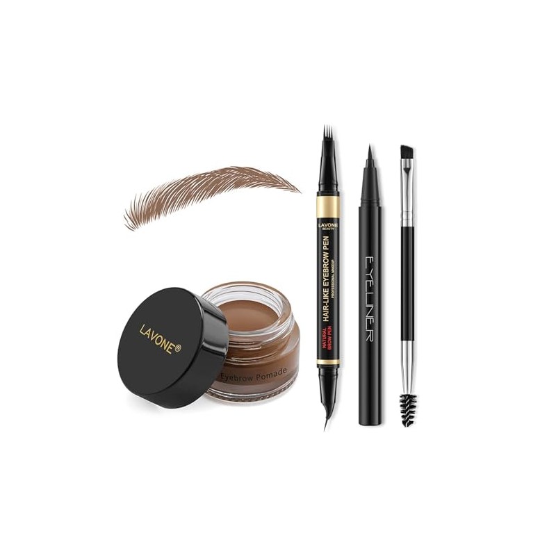 • LAVONE Eyebrow Pencil Kit, with 4 Tip Waterproof Microblading Curved Eyebrow Pen, Eyebrow Pomade, Eyeliner and Dual-ended Eyebrow Brush - 01 Soft Brown