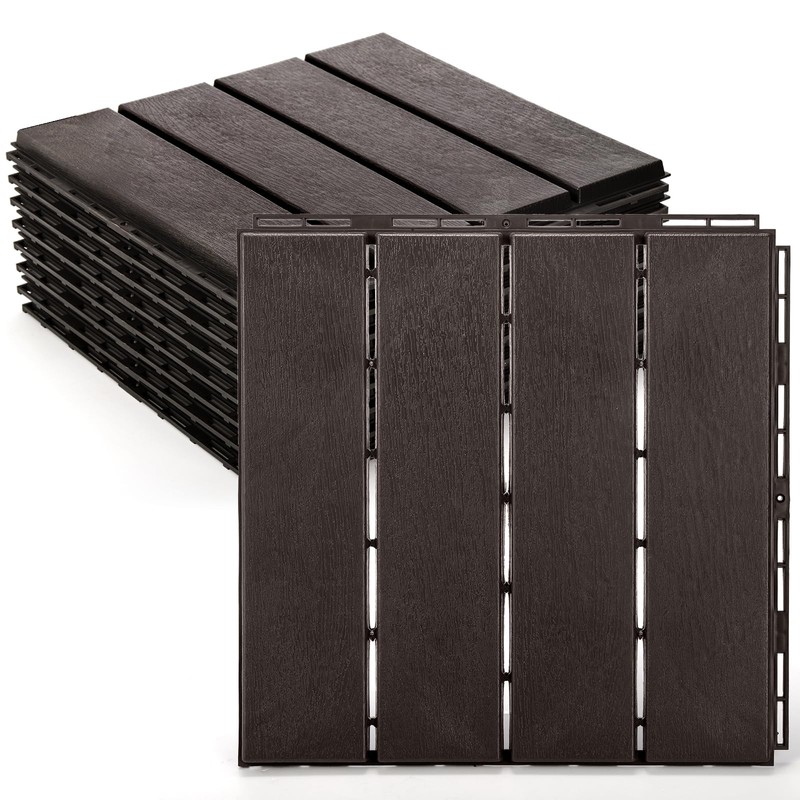 Lawei 9 Pack Plastic Interlocking Deck Tiles, 12"x12" Waterproof Outdoor Patio Flooring, Four Slat Floor Decking Tiles Patio Pavers for Garden Porch Poolside Balcony Backyard, All Weather Use, Gray