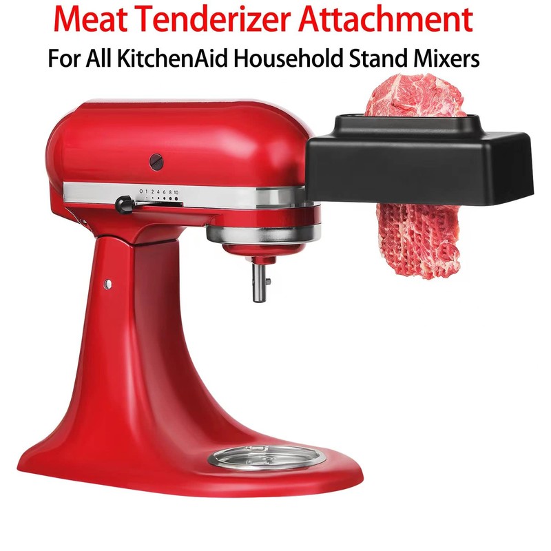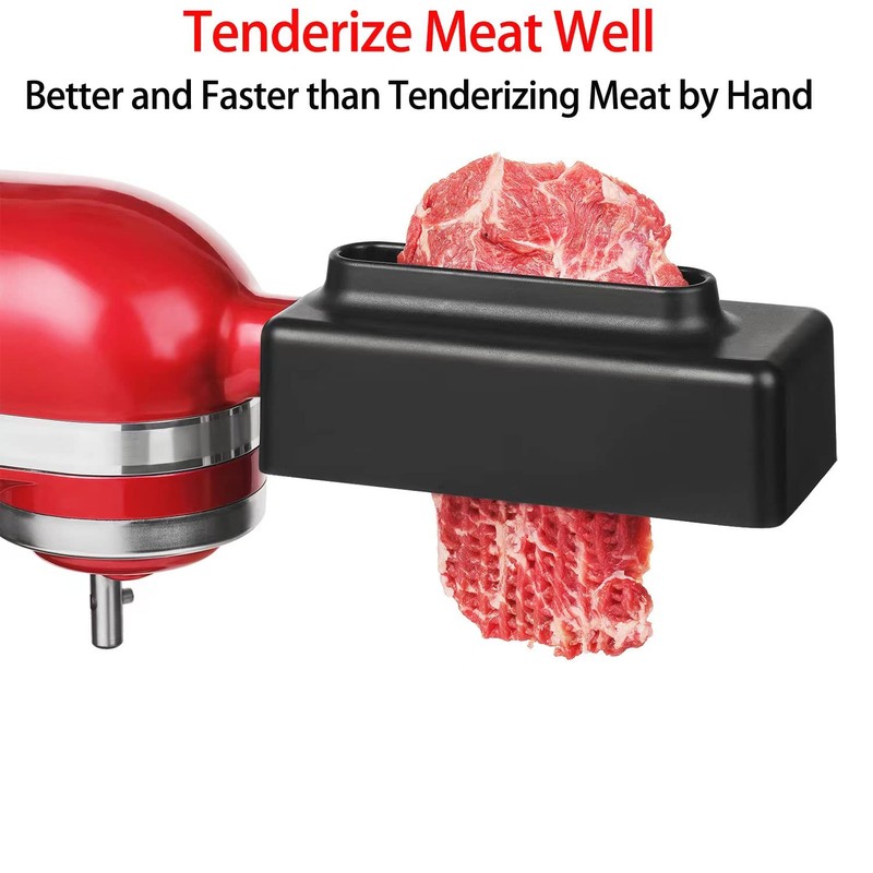 - Tenderizer is compatible with all KitchenAid Household Stand Mixers, this mixer attachment can tenderize a variety of boneless meats like beef, mutton, pork, venison, and more (Meat Thickness /in or cm). But remember to avoid using it on chicken, duck, or fish to prevent damage.