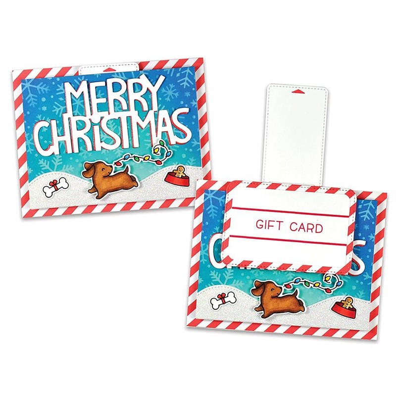 - Lawn Fawn Die - FLIPPY FLAPPY - This die set creates a fun, interactive project! Hide a gift card or a cute stamped element behind the front panel. When the recipient pulls the tab, a surprise flips out! Holds a standard size gift card.