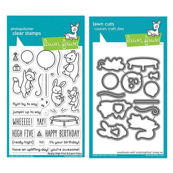 - Lawn Fawn Really High Five 4”x6” Clear Stamp Set and Coordinating Custom Craft Die Set (LF2215, LF2216), Bundle of 2 Items
