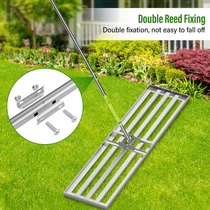 - Nersatile for All Lawns: Our levelers cater to all types of lawns with three ground plate sizes: 36" × 12", and 48" × 12";Whether it's your backyard, farm, garden, or golf course, including Bermuda, Kentucky Bluegrass, Ryegrass, St. Augustine, and Fescue, our rake is suitable for all terrains (Please note: Best results are achieved when grass is cut to 1.5" or less)
