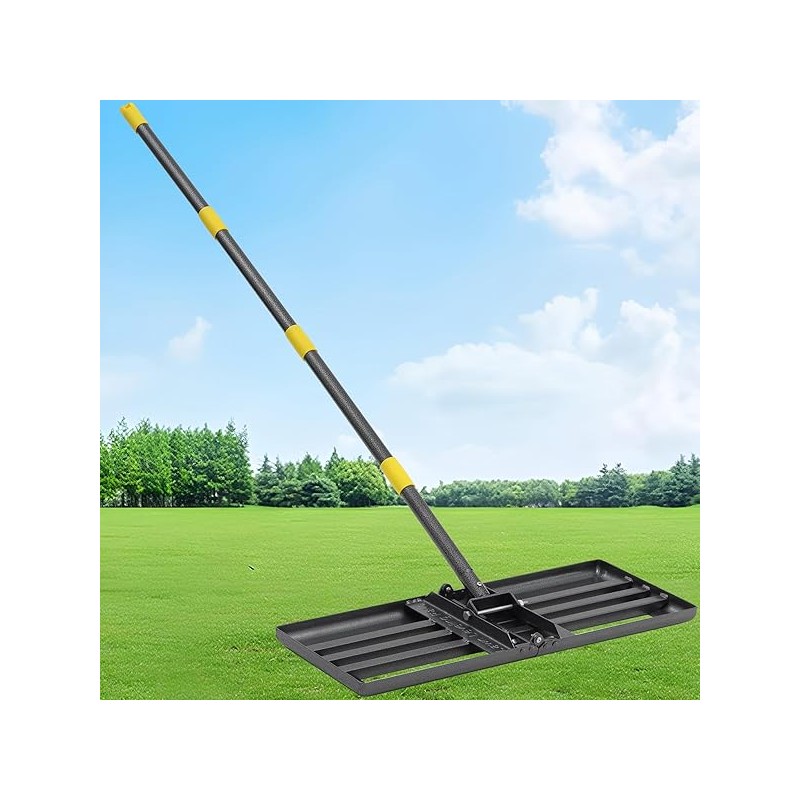 Lawn Leveling Rake-Heavy Duty 30”x10” Foldable Leveler Plate,5FT Adjustable Long Handle,Non Flipping Smooth Edge,Stainless Steel Ground Leveler for Yard,Soil,Gravel,Dirt,Landscaping