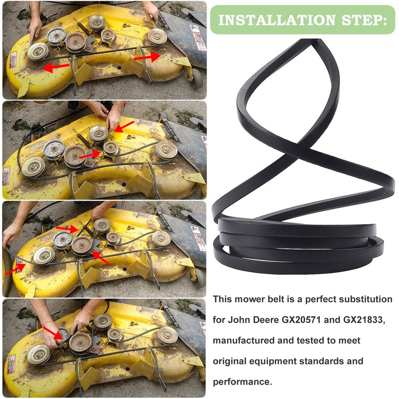 - Direct Replacement – This mower belt is a perfect substitution for John Deere GX20571 and GX21833, manufactured and tested to meet original equipment standards and performance.