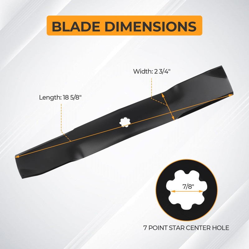 - Specifications: Blades Length: 18 5/8", Blades Width: 2 3/4", Blades Thickness: 0.197", 7 Points Star Center Hole (Please wear gloves for safety during installation.)