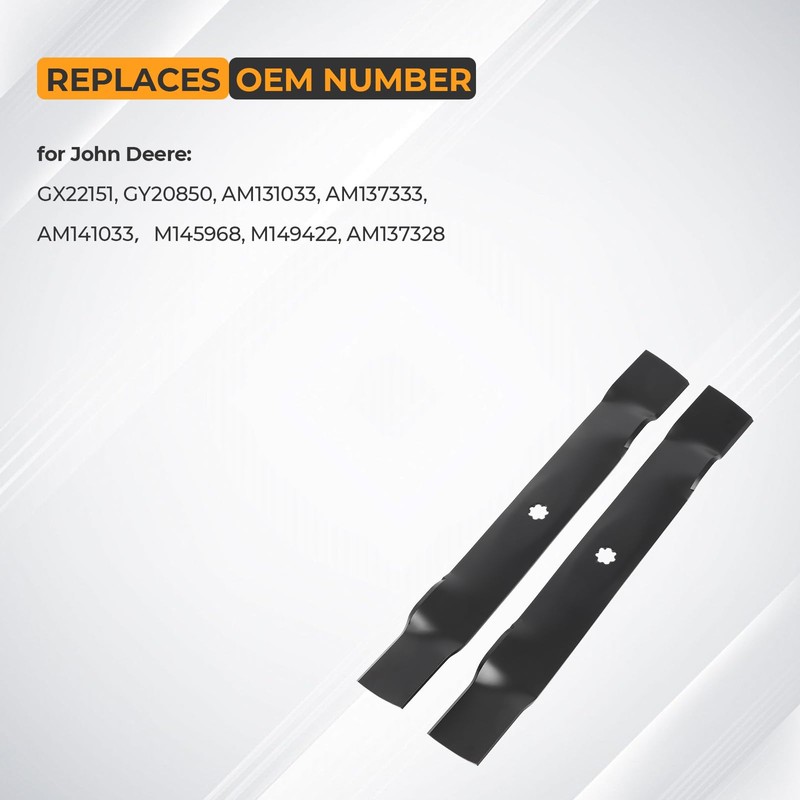 Lawn Mower Blades Replacement Part Number John Dee re 42 inch GX22151 GY20850 AM131033 AM137333 AM141033 Compatible with 102 105 115 135 D100 D105 D110 D125 D130 LA100 LA105 E100 E110, 2 Pack