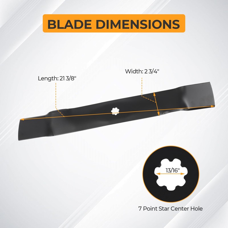 - Specifications: Blades Length: 21 3/8", Blades Width: 2 3/4", Blades Thickness: 0.157", 7 Points Star Center Hole (Please wear gloves for safety during installation.)