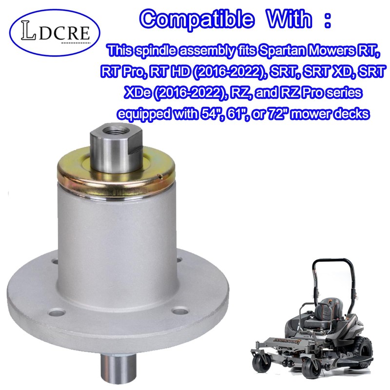 - Compatible With: This spindle assembly fits Spartan Mowers RT, RT Pro, RT HD (2016-2022), SRT, SRT XD, SRT XDe (2016-2022), RZ, and RZ Pro series equipped with 54", 61", or 72" mower decks.