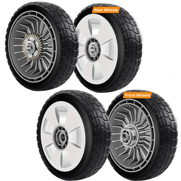 Lawn Mower Wheels, 4 Pack HRR216 Lawn Mower Drive Wheels with 2 Rear Wheels 42710-VE2-M02ZE + 2 Front Wheels 42710-VH7-010ZA Replace for Honda HRT216 HRR216 HRS216 HRB215 Lawn Mower Replacement