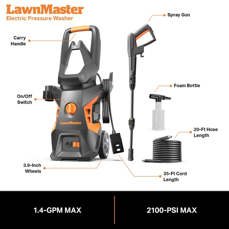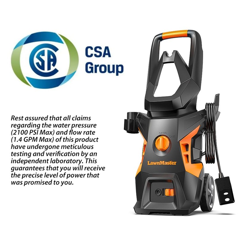 LawnMaster LT306-1800C Electric Pressure Washer 13 Amp 1.4 GPM 2100 Max PSI with Foam Bottle CSA Certified