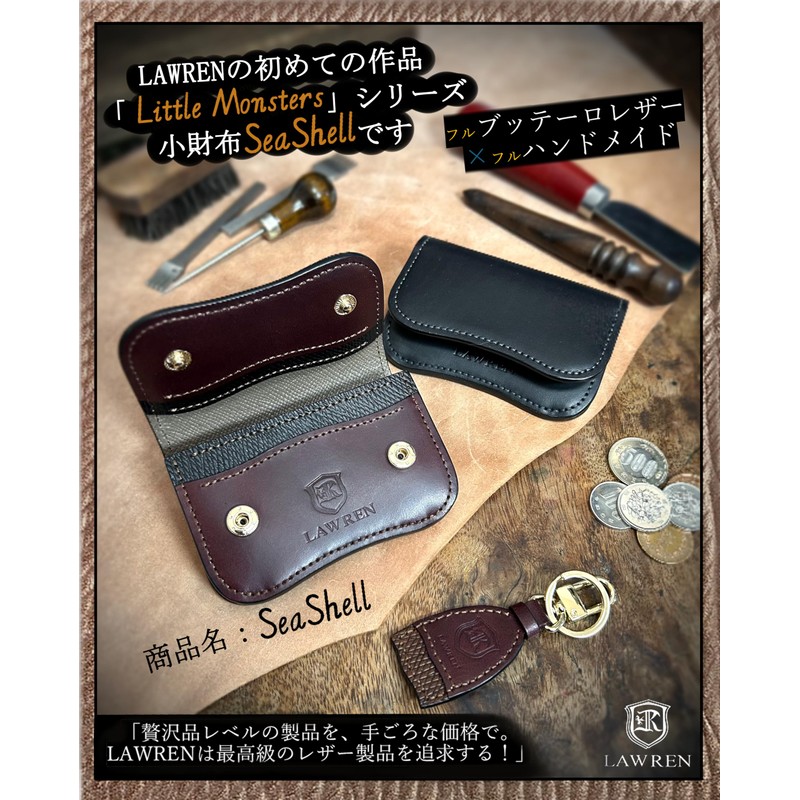 LAWREN Coin Purse, Coin Case, Card Case, Wallet, Genuine Italian Buttero Leather, claret