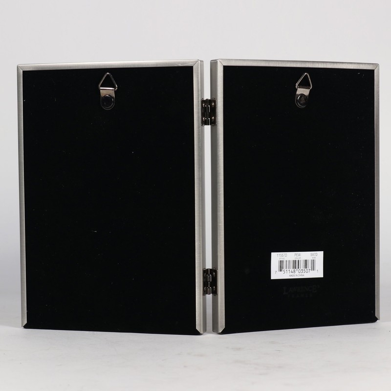Lawrence Frames Antique Pewter 5x7 Hinged Double Picture Frame, Bead Border D...