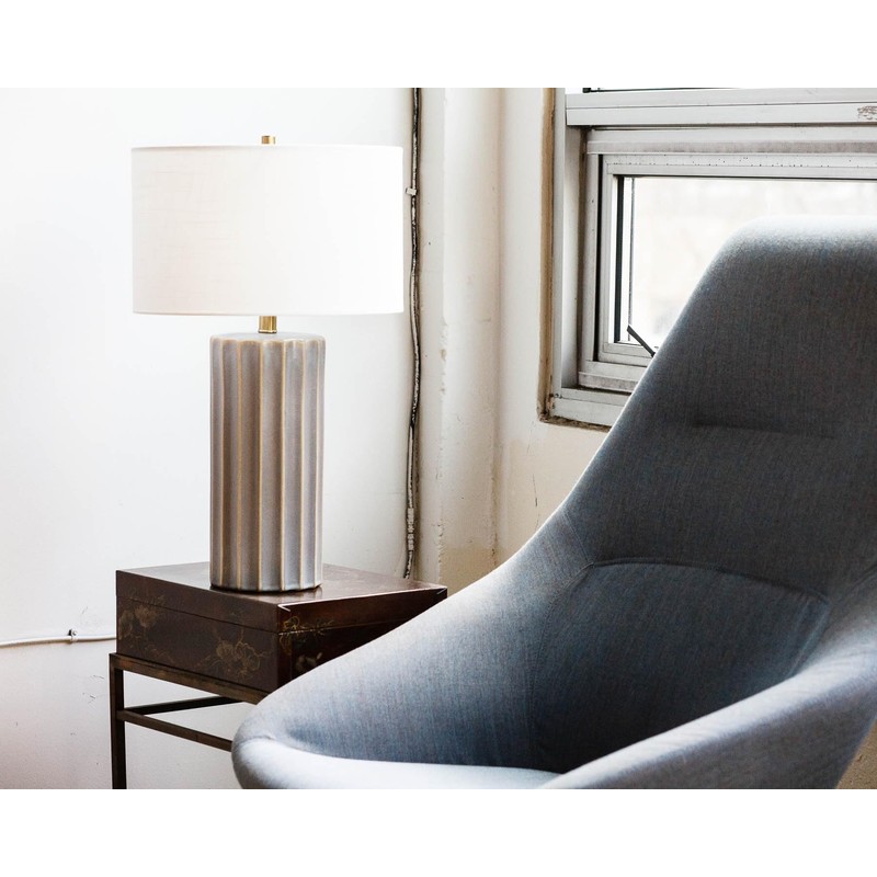 Lawrence & Scott Naomi Gray Porcelain Handmade Luxury Japandi Table Lamp for Living Room Bedroom Office with Custom Textured Linen Lampshade