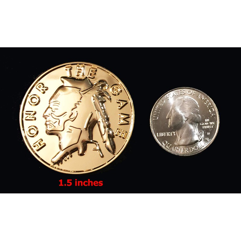 the coin features a native american warrior “heads” with the words, “HONOR THE