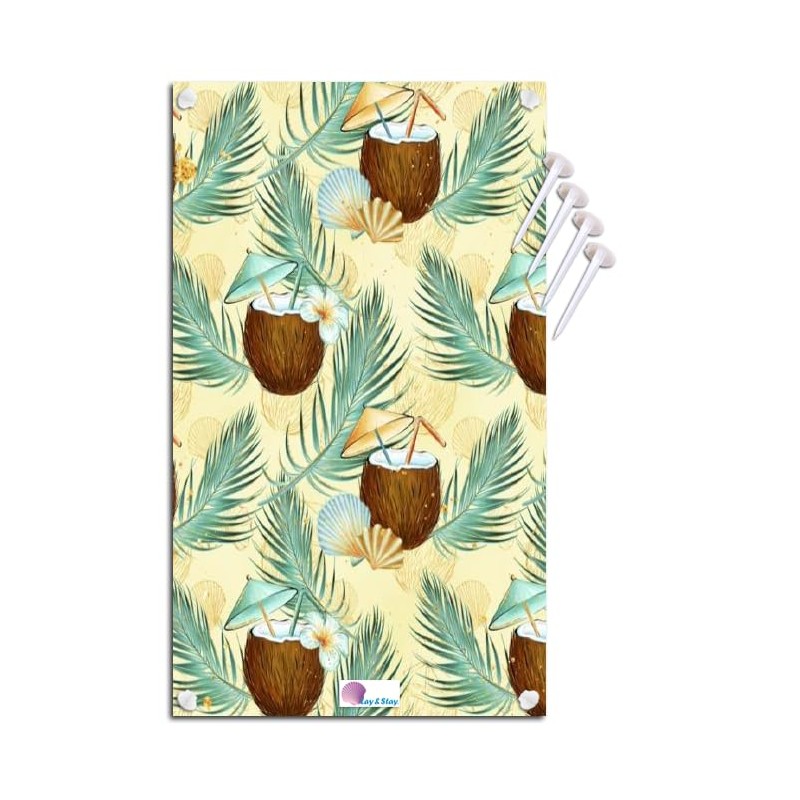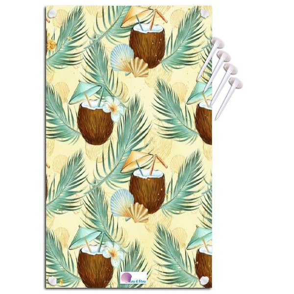 Lay N Stay Beach Blanket Towel Absorbent, Quick-Dry, Sand-Free, Extra Large for Adults & Kids, Ideal for Beach, Pool, Camping & Travel, with Secure Shell Sand Stakes (Coconuts)