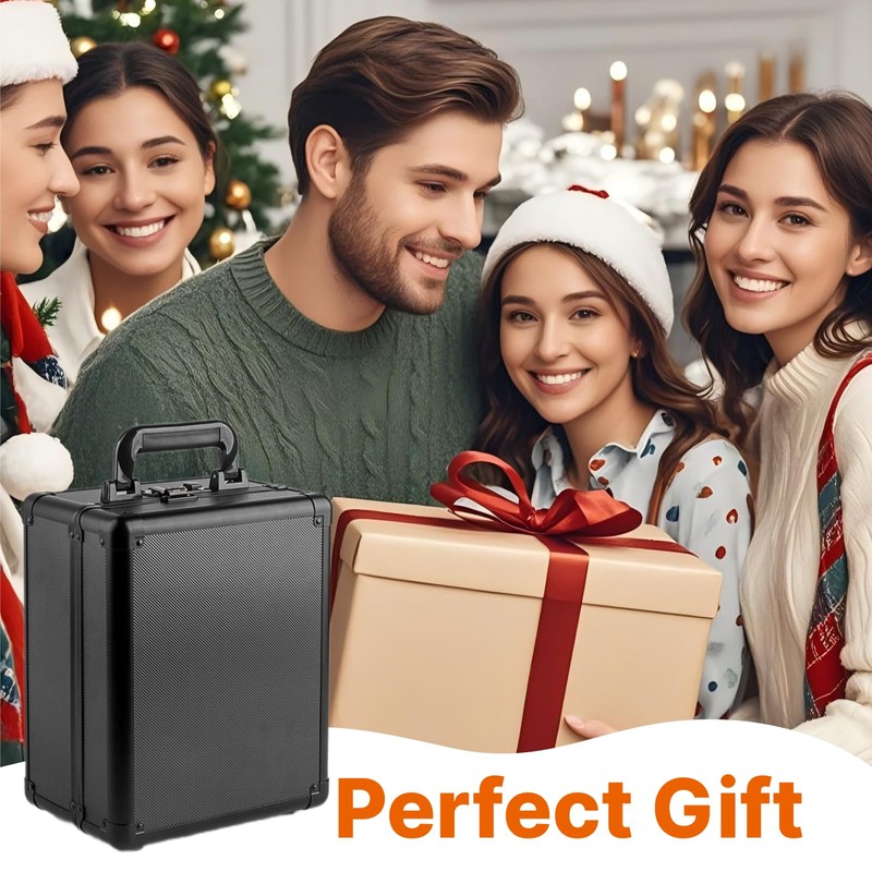 - Premium Materials--- Crafted from top-notch materials. Durable aluminum alloy. ABS veneer. Soft EVA lining with 2 spacious card slots, each card slot is equipped with 3 sponge dividers (6 in total) to keep your cards secure and intact. Individual slot dimensions: 207mm x 108mm x 83mm.