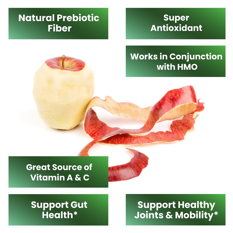 Rich in Nutrients: containing a variety of phytonutrients, including vitamins C and A, potassium, calcium, folate, iron, and ursolic acid (120 mg/serving), as well as antioxidants, this apple peel powder is the perfect food for promoting the growth of Akkermansia and Bifidobacterium.