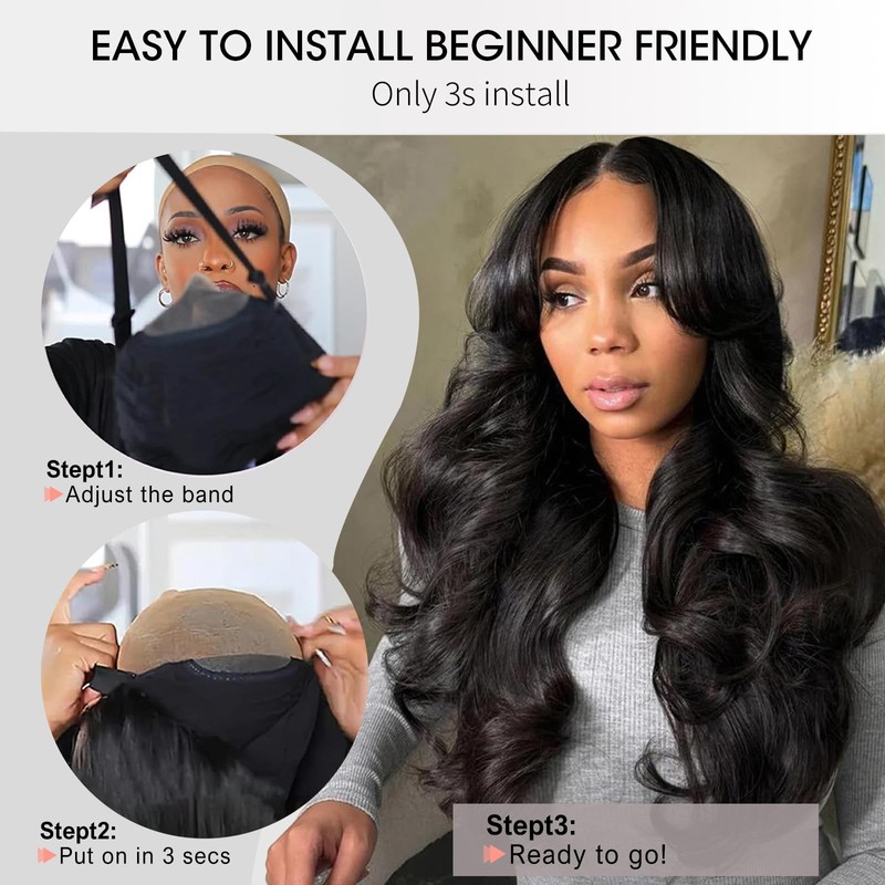 - Glueless wig human hair easy to install: installation is faster with the glueless wig with layered curtain bangs design. Pre-cut lace, pre-drawn hairline and pre-bleached knots. 3S Wear and Go - saving your time and effort while still achieving a flawless look without the mess.