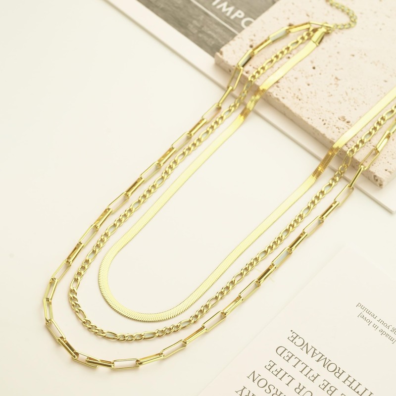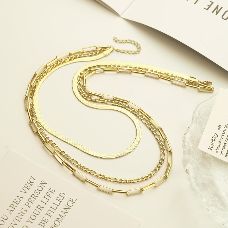 - Adjustable Length Design: Three layered necklaces for women in one piece, featuring adjustable chains for a comfortable fit. A stylish gold necklace stack that suits various necklines.3 Layer Stackable Necklace Set with Snake Chain, Paperclip Chain, Figaro Chain