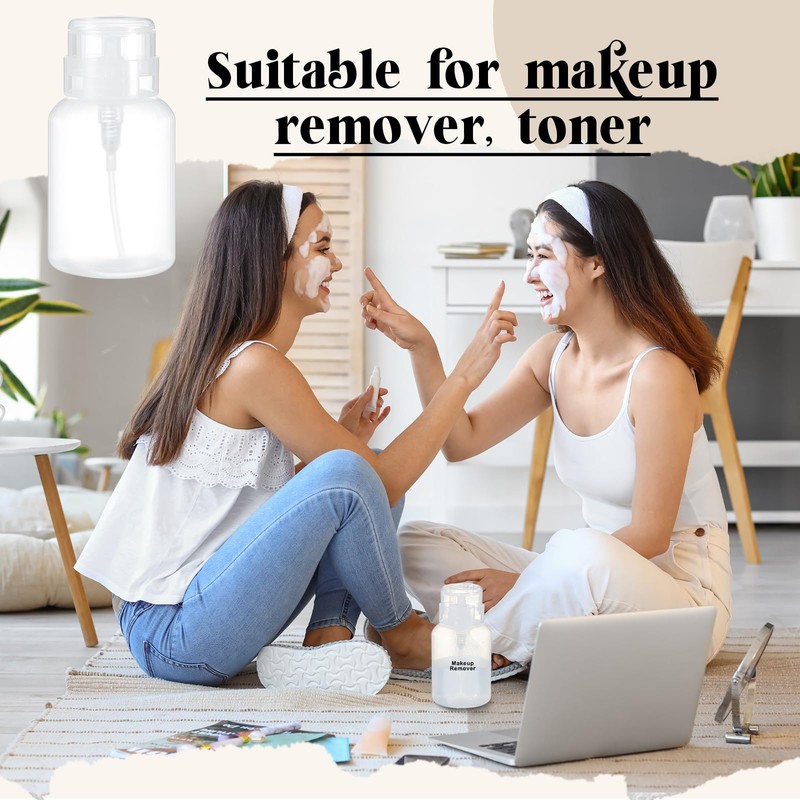 - Package Includes: the package comes with 3 pieces of push down pump dispenser and stickers, the 12 stickers are printed 4 kinds of words with [Nail Polish Remover], [Makeup Remover], and [Alcohol], sufficient quantity can meet your using and replacing needs, and you can also share them with your families and others