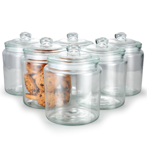 - What's in the Package: you will receive 6 glass cookie jars with lids, each equipped with a corresponding lid, to keep the jar airtight, the glass jar is transparent, can be easy to observe the state of the jar food or other items, the jar airtightness is nice, can avoid your food spoilage
