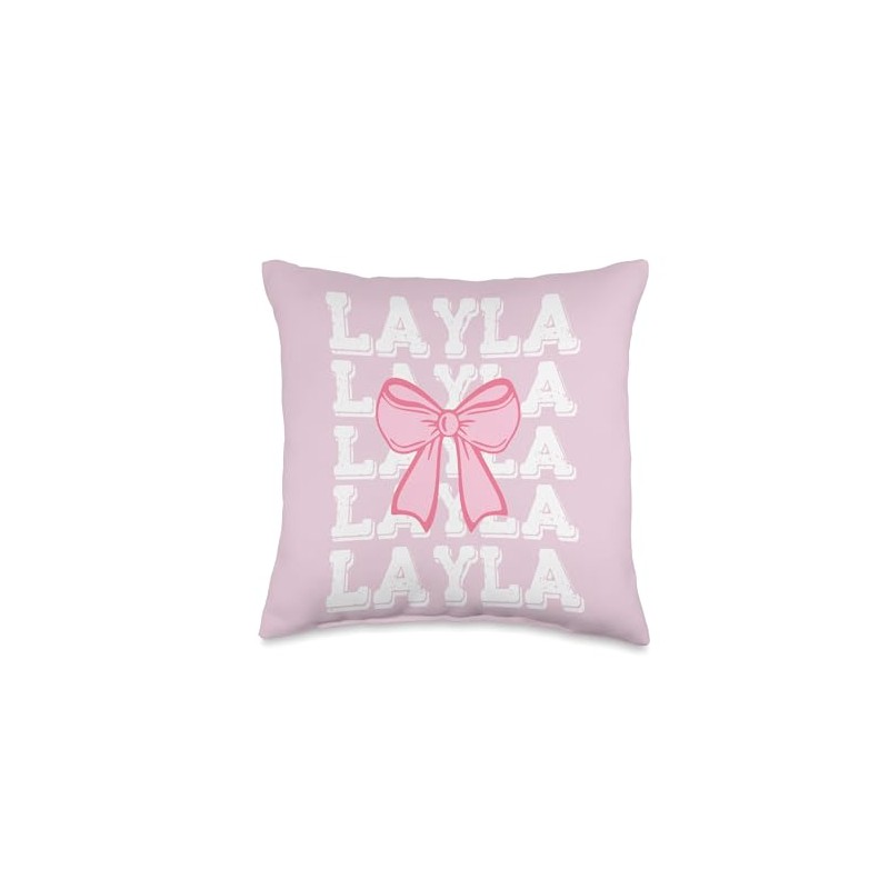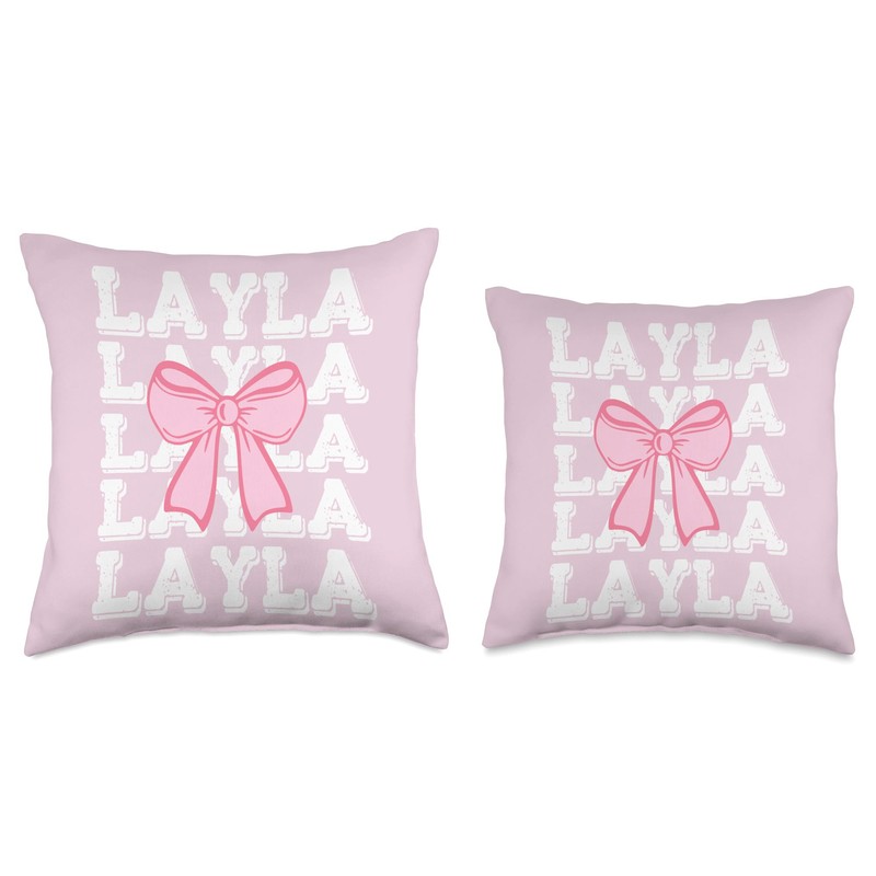 LAYLA Name Coquette Big Pink Bow Simple Cute Girly Girl Throw Pillow